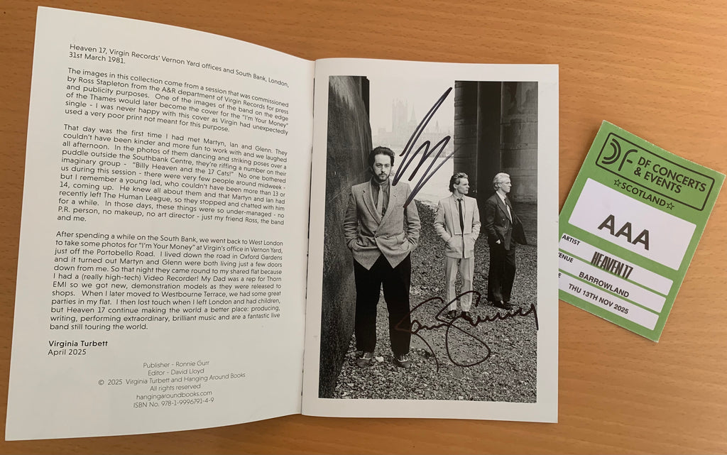 It's always a pleasure to meet up with artists from our favourite bands - particularly when one of them is also one of our published photographers. Before the Glasgow show on the current Heaven 17 "Sound With Vision" tour, Glenn Gregory and Martyn Ware took time out from their day jobs to sign copies of Virginia Turbett's “The Only Game in Town” collection of images of the band from 1981.